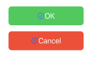 lazy var okButton: UIButton = { let button = UIButton(type: .custom) button.translatesAutoresizingMaskIntoConstraints = false button.layer.cornerRadius = 8 button.backgroundColor = .systemGreen button.setTitle("OK", for: .normal) // Title button.titleLabel?.font = .systemFont(ofSize: 20) button.setImage(UIImage(systemName: "checkmark.circle"), for: .normal) // Image button.addTarget(self, action: #selector(touchUpOkButton), for: .touchUpInside) return button }() lazy var cancelButton: UIButton = { let button = UIButton(type: .custom) button.translatesAutoresizingMaskIntoConstraints = false button.layer.cornerRadius = 8 button.backgroundColor = .systemRed button.setTitle("Cancel", for: .normal) button.titleLabel?.font = .systemFont(ofSize: 20) button.setImage(UIImage(systemName: "x.circle"), for: .normal) button.addTarget(self, action: #selector(touchUpCancelButton), for: .touchUpInside) return button }()기본적으로 위와 같이 Title과 Image를 같이 설정해주면, 아래와 같이 타이틀 왼쪽에 사진이 추가됩니다.