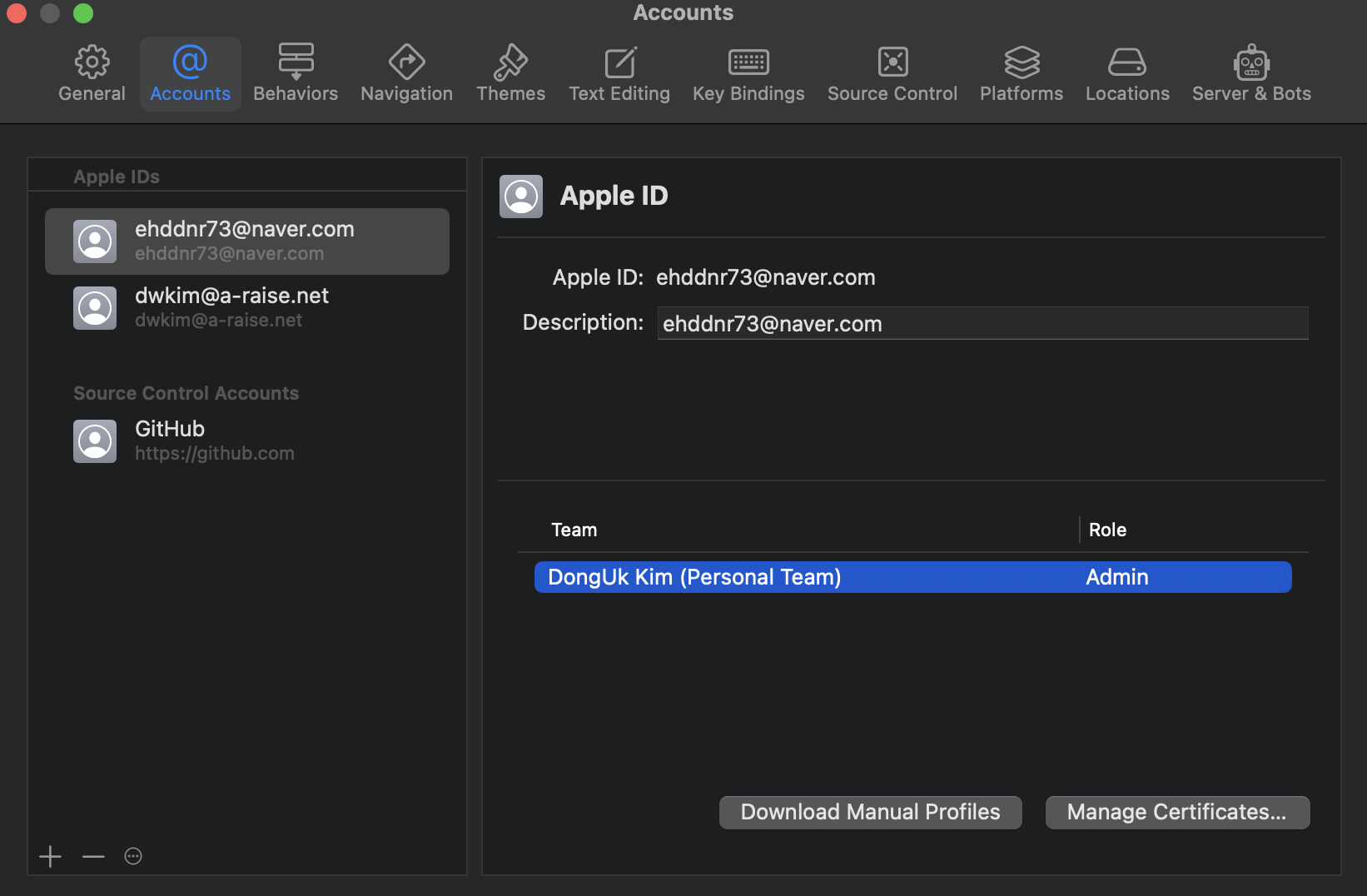 앱을 빌드하는 과정에서 위의 서비스를 사용하는 등, 필요하다면 Xcode는 서명 인증서를 요구하며, 인증서와 함께 그에 대한 공개-비공개 키쌍을 키체인에 추가합니다. 또한 인증서와 공개키는 developer account에 추가됩니다.