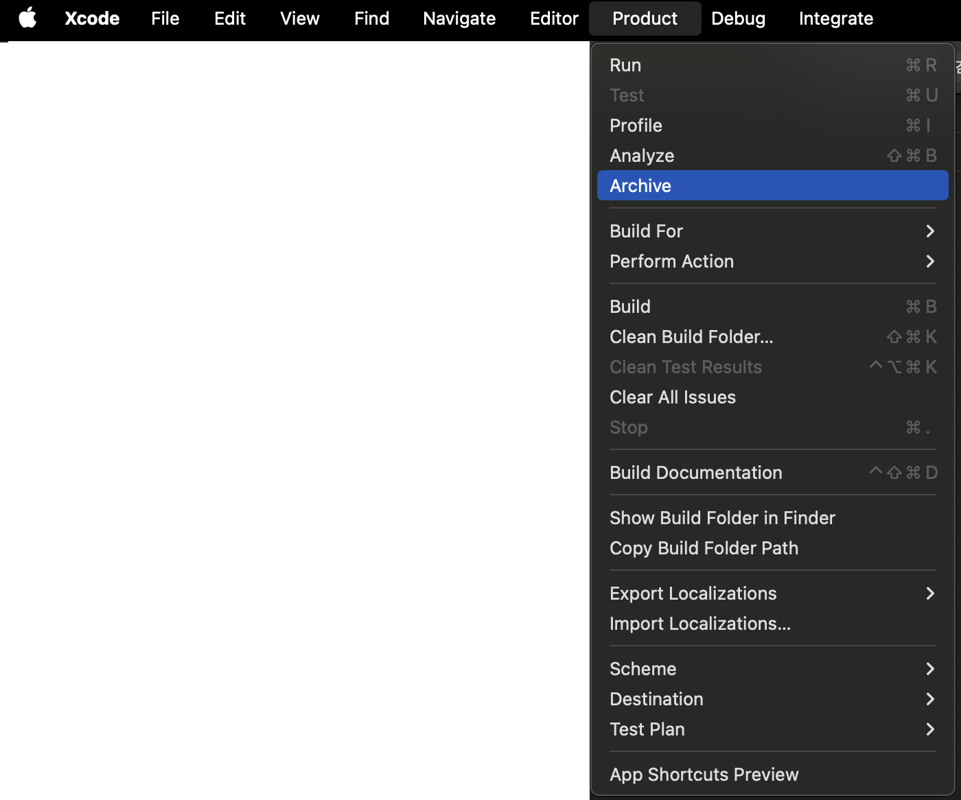 4. Xcode에서 프로젝트 아카이브, ipa 파일 생성